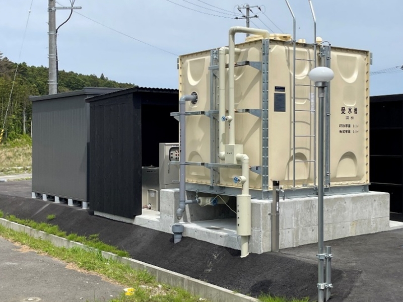 ・受水槽の高さを抑え、受水槽隣に附属機器を収めるための建築景観に合わせた木造のポンプ小屋を設置しました。