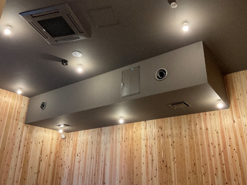 ・2階レストランが床吹き出し空調となっており、窓際のベンチ下の空調機設置スペース不足による設置検討を求められました。